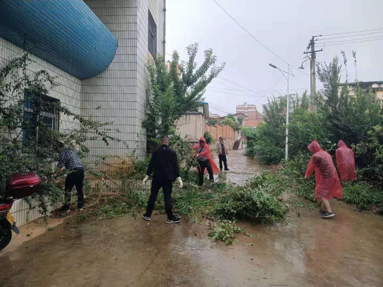黨員們有的鋸除雜樹,有的在草叢中揮舞著鐮刀割草、有的將樓道內(nèi)亂堆放的雜物清理干凈。雖然下著雨,但絲毫沒有降低大家勞動(dòng)的熱情,經(jīng)過大家一天的辛勤勞動(dòng),終于完成了清理工作,整個(gè)生活區(qū)面貌煥然一新。
