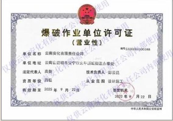 路雖遠(yuǎn),行則至;事雖難,做則成!金秋十月,經(jīng)過(guò)多方協(xié)調(diào),云南安化有限責(zé)任公司取得營(yíng)業(yè)性爆破作業(yè)單位許可,與之前取得的生產(chǎn)許可證、危險(xiǎn)貨物運(yùn)輸?shù)缆方?jīng)營(yíng)許可證成為公司啟動(dòng)現(xiàn)場(chǎng)混裝作業(yè)資質(zhì)的必備三證,為實(shí)現(xiàn)公司爆破服務(wù)一體化進(jìn)程提供了資質(zhì)保證。