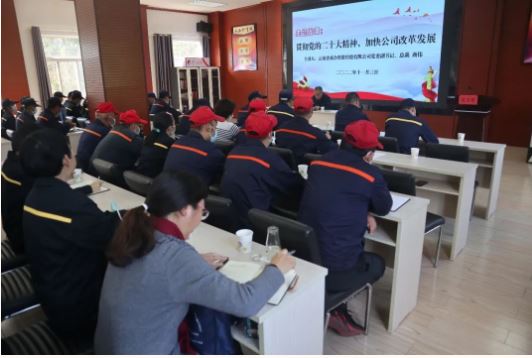 2022年11月3日,云南省戎合投資控股有限公司黨委副書記、總裁商偉同志到基層黨建聯(lián)系點安寧分公司生產(chǎn)黨支部進(jìn)行黨的二十大精神宣講。