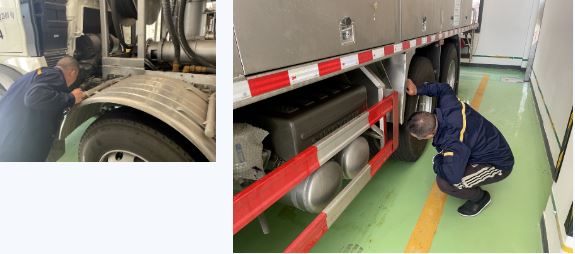 檢測(cè)過程中,技術(shù)人員對(duì)每輛炸藥混裝車上的生產(chǎn)設(shè)備流量器、壓力表粘貼了檢測(cè)標(biāo)識(shí)和檢測(cè)日期,保證混裝車在投入生產(chǎn)時(shí),各生產(chǎn)設(shè)備計(jì)量器具完好有效,能正常投入運(yùn)行。同時(shí),組織了安全管理人員對(duì)公司8輛現(xiàn)場(chǎng)混裝炸藥車開展安全隱患排查,對(duì)現(xiàn)場(chǎng)混裝車輛的胎壓、電瓶、液力緩速器、液壓氣囊等進(jìn)行測(cè)試,對(duì)車輛配備的消防器材、安全警示標(biāo)志、標(biāo)識(shí)完好情況進(jìn)行檢查,及時(shí)排除安全隱患問題,確?,F(xiàn)場(chǎng)混裝車輛生產(chǎn)設(shè)備的完好有效和車輛運(yùn)輸時(shí)的安全,為公司生產(chǎn)運(yùn)輸工作的安全運(yùn)行提供了保障。