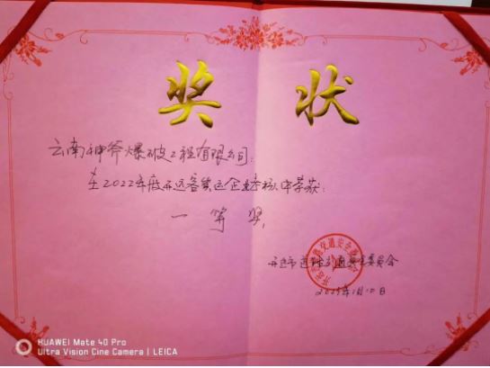 【榮譽】神斧爆破公司被開遠市交通安全委員會評為2022年度開遠客貨運輸企業(yè)道路交通安全管理工作一等獎