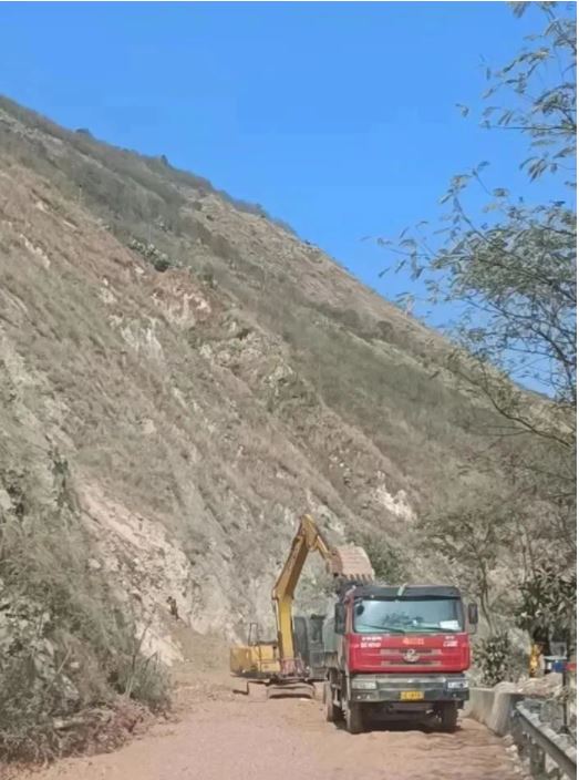 期盼—春節(jié)期間施工隊伍搶修塌方道路,全廠職工殷切期盼公路早日修通恢復生產(chǎn)